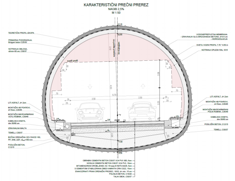 Predvideno nadkritje predora se giblje od 4 do 9,5 metra.
