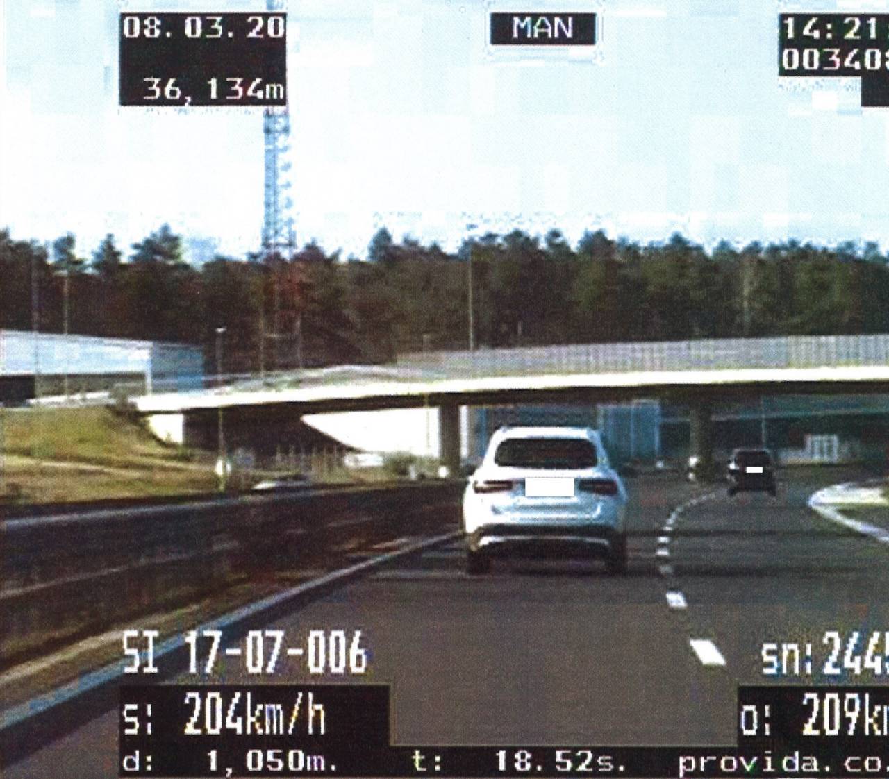 Okrog 14.20 so policisti izven naselja Draženci ugotovili, da je voznik osebnega avtomobila znamke Mercedes, ki ga je vozil 53-letni voznik iz Maribora, na razdalji 1.050 metrov vozil s povprečno hitrostjo 204 kilometrov na uro.