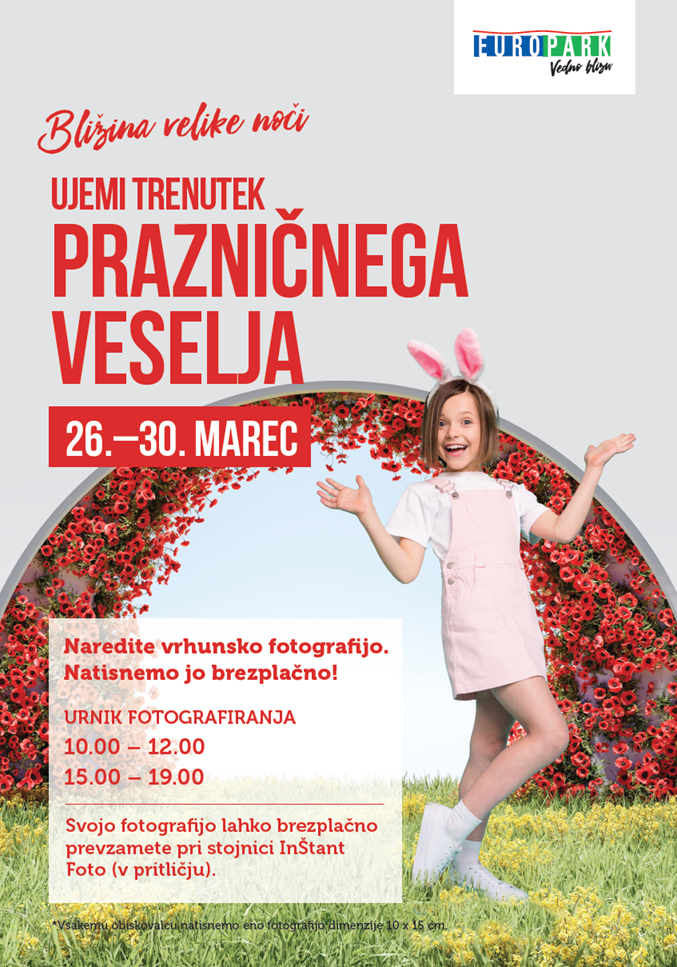V Europarku bodo v sklopu praznovanja velike noči letos obiskovalce razveselili s profesionalnim fotografiranjem, ki bo v nadstropju pri trgovini Bags&More.