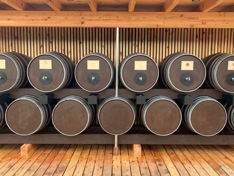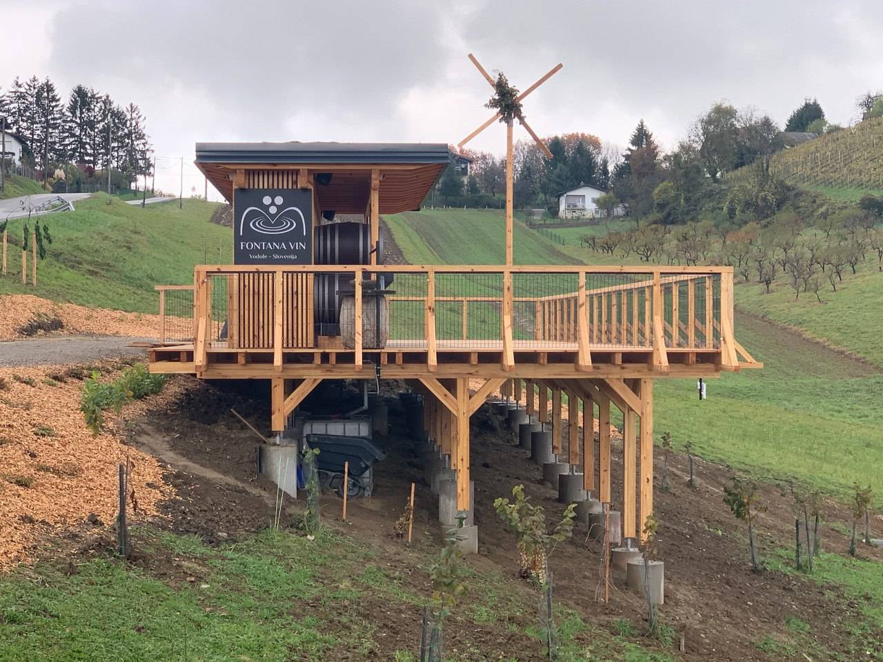 Ko smo pred dobrim mesecem dni obiskali posestvo, smo si z razgledne ploščadi lahko le predstavljali, kako bo izgledala Fontana vin. Pred dnevi pa so se po njej že sprehodili prvi obiskovalci.
