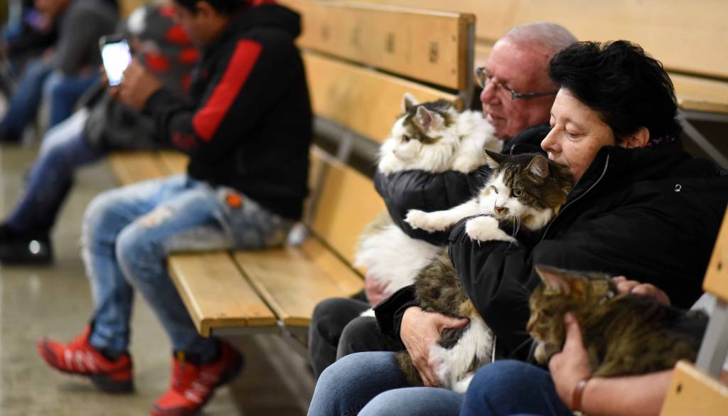 Gre za mačke stare 15, 9 in 5 let, od katerih se njuni lastniki niso mogli odreči: "Če ne bi smela vzeti s sabo moje mačke, bi ostala doma," nam je zuapala Kristina. V dvorani je po pričevanjih zelo dobro poskrbljeno za živali.
