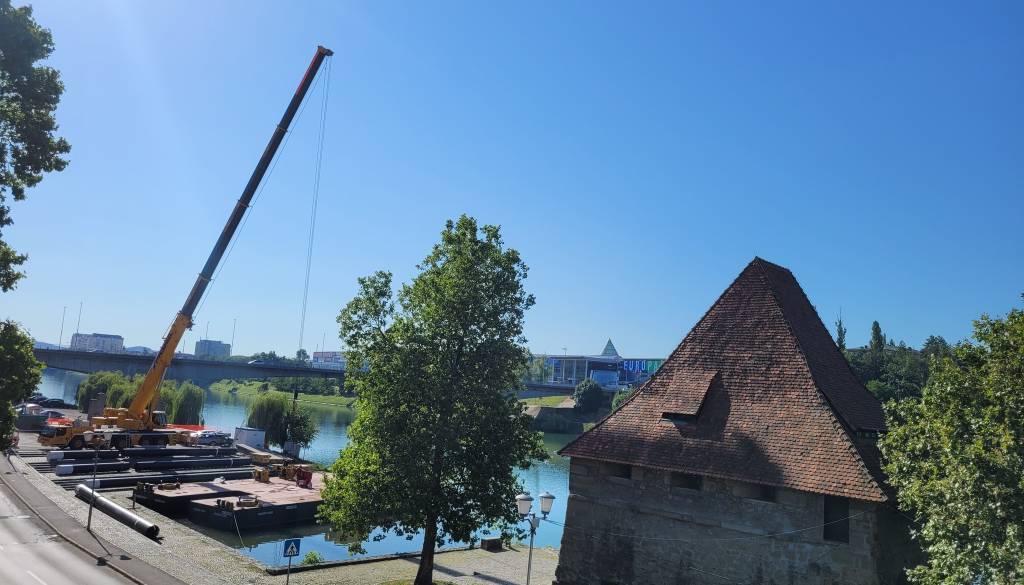 Istočasno pa so na levem in desnem bregu Drave stekla dela za gradnjo brvi Lent - Tabor, kjer je izvajalec začel s temeljenjem.