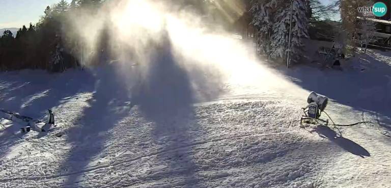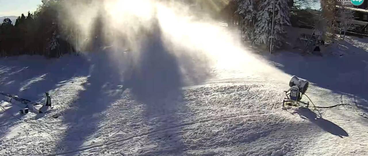 Mariborsko Pohorje se pripravlja na odprtje zimske sezone. Potem ko je sneg v noči iz sobote na nedeljo znova pobelil vrhove, so zdaj ob nizkih temperaturah zagnali tudi snežne topove. Kot je razvidno iz spletne kamere na vrhu Mariborskega Pohorja ob hotelu Bellevue snežni top pospešeno viša snežno odejo.