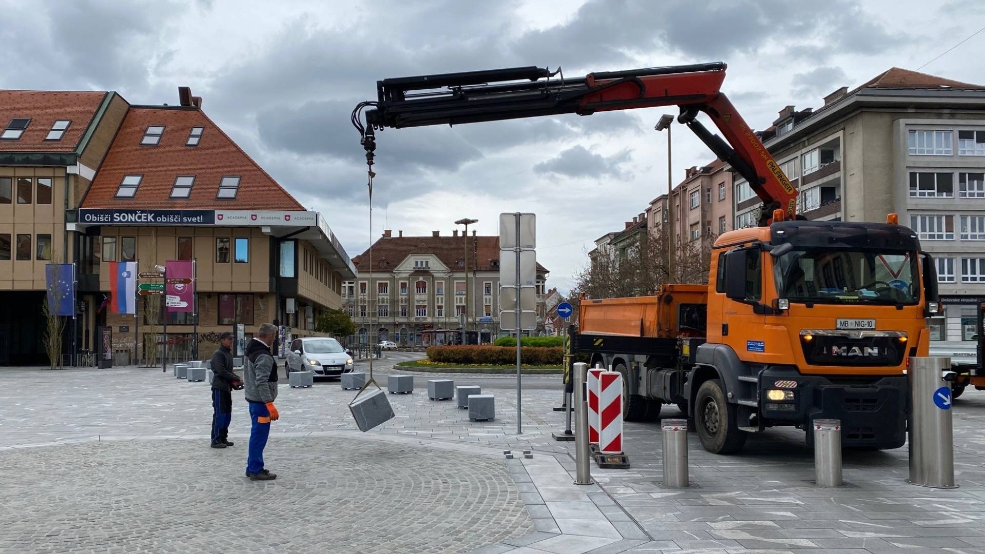 »Kljub temu je nekdo (znova) prestavil eno od kock,« so jezni na mariborski občini. Prav zato sta v nedeljski akciji delavca Nigrada kocko vrnila na njeno prvotno mesto.