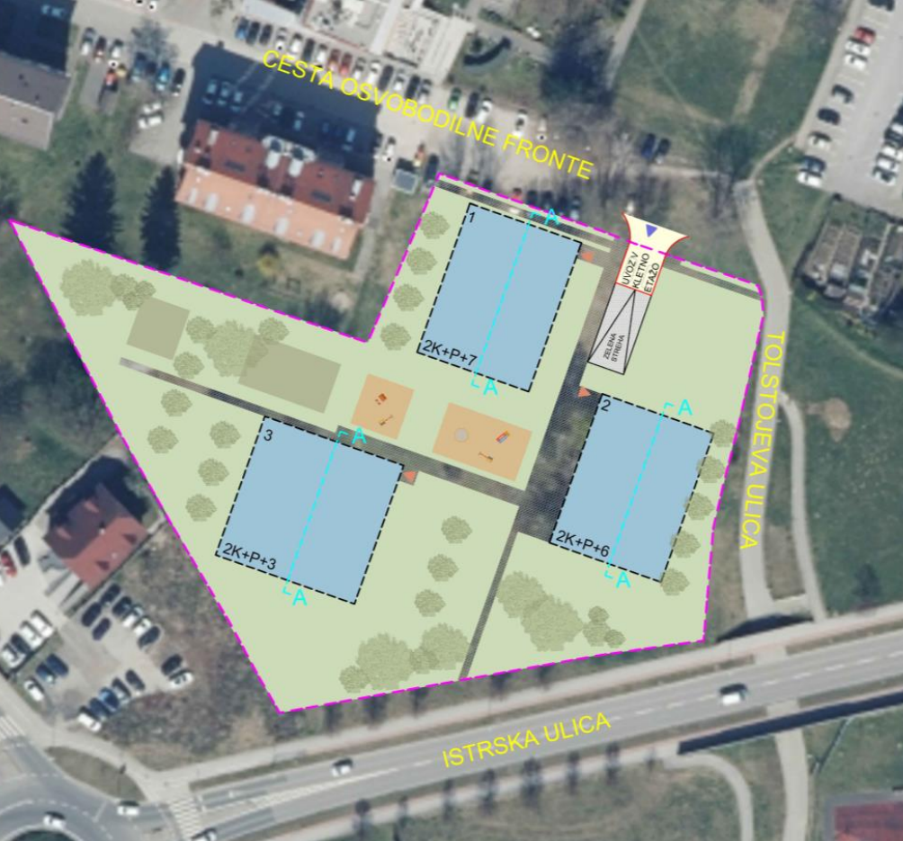 V zahodnem in osrednjem delu pa investitor predvideva še parkovne ter rekracijske površine in otroško igrišče.