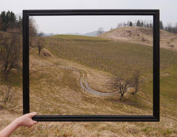 Okviri za slike, brez slik, bodo uokvirjali poglede na vinograde in pašnike, na hiše in polja, na obmejne kamne in na nevidno mejo.