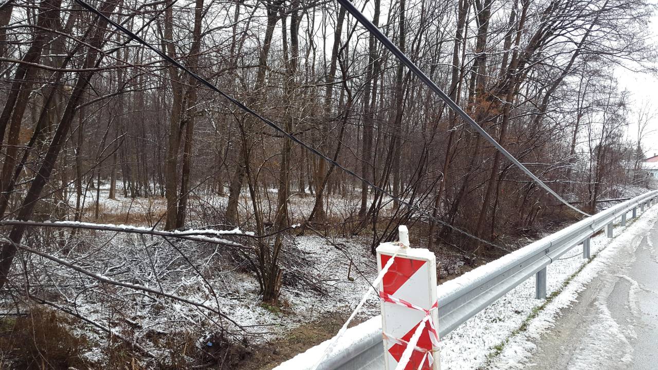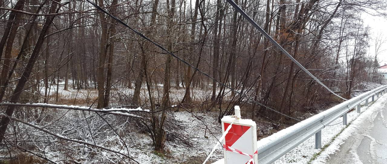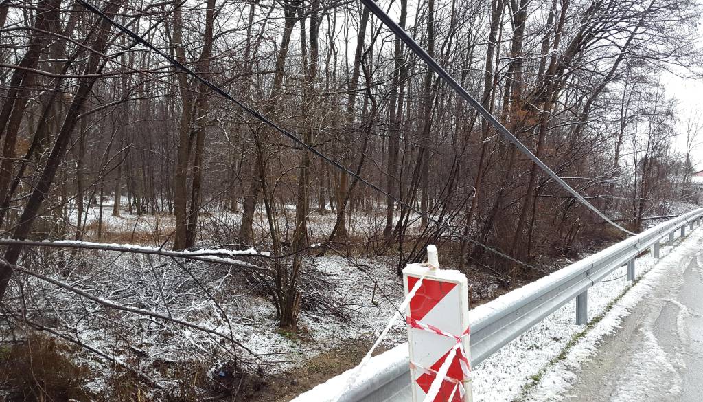 Zapadli težki moker sneg je ponoči, kot smo že poročali, podiral drevje. Podrta drevesa so na srednje in nizkonapetostnih daljnovodih povzročala prekinitve vodnikov in tudi podpornih drogov. Zaradi tega je prišlo tudi do prekinitev oskrbe z električno energijo. Ob 4. uri zjutraj je bilo prizadetih 12.000 uporabnikov predvsem na območju Pohorja, Kozjaka, Haloz in Slovenskih goric.