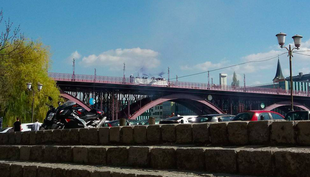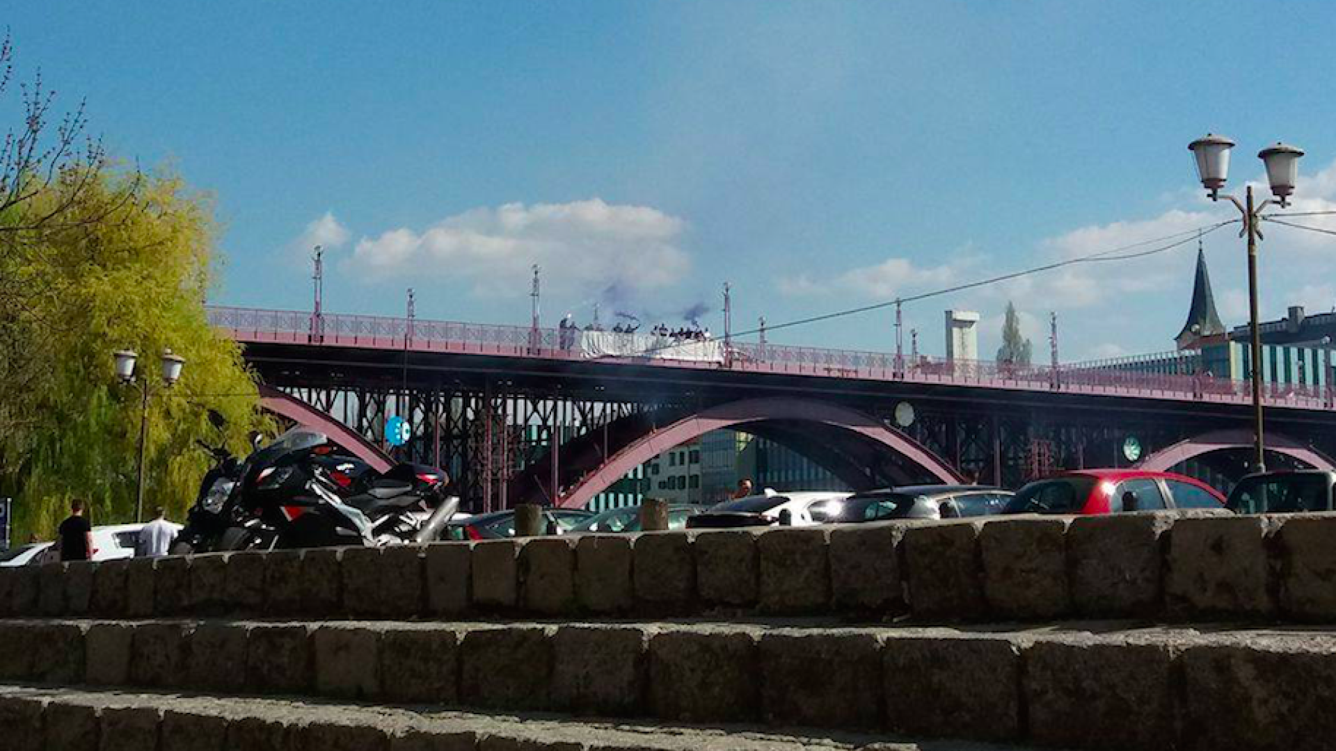 Stari most v Mariboru je danes v popoldanskih urah ponovno postal oglasna deska. Tokrat si ga je izposodila skupina dvanajstih posameznikov, ki so z baklami in več metrov dolgim napisom pritegnili nemalo radovednih pogledov.
