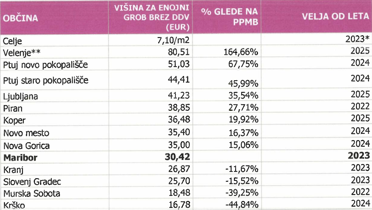 Kot je razvidno iz gradiva, objavljenega na spletni strani mariborske občine, je, upoštevajoč socialni vidik, ki izhaja iz statusa grobnine kot »socialne kategorije«, Pogrebno podjetje Maribor tudi tokrat predlagalo ceno grobnine, ki temelji zgolj na neposrednih letnih stroških upravljanja pokopališke dejavnosti za posamezno vrsto groba.