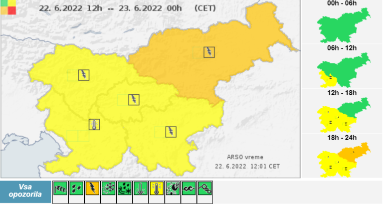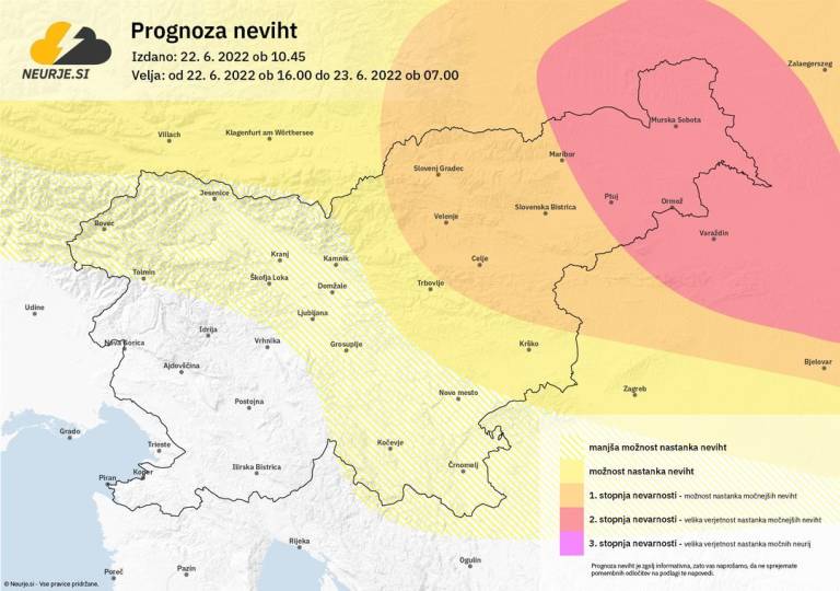 Agencija Republike Slovenije za okolje je za severovzhod Slovenije izdala oranžno opozorilo za veliko možnost neviht.
