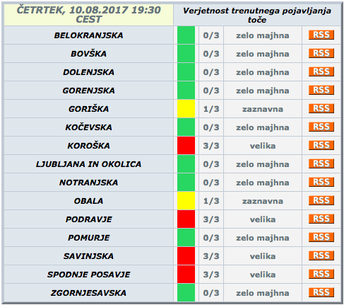 Vremenoslovci še opozarjajo, da se lahko pojavijo močne nevihte z nalivi, sunki vetra, udari strel in točo. Ob tem lahko narastejo manjše reke in hudourniki.