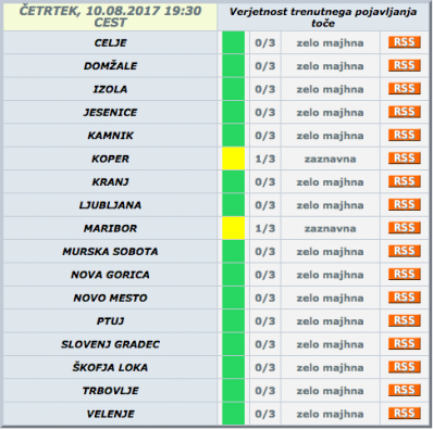 Agencija za okolje je za Podravje izdala tudi rdeč alarm za nevarnost toče. Za Maribor je izdan rumen alarm.