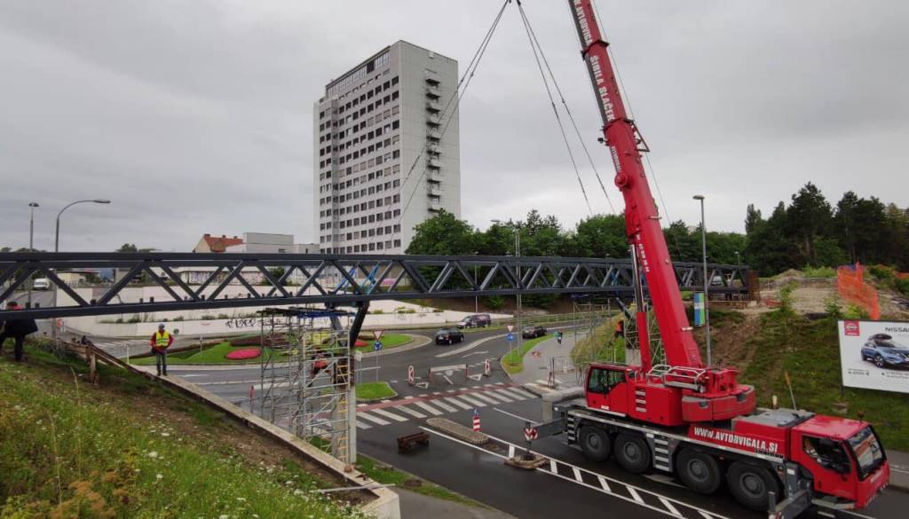 Nad Titovo cesto so v zgodnjih jutranjih urah začeli nameščati 22 ton težko jekleno konstrukcijo nadhoda, s katero bodo kolesarjem in pešcem omogočili lažje prečkanje ceste. Dela bodo končana v sredini meseca septembra.
