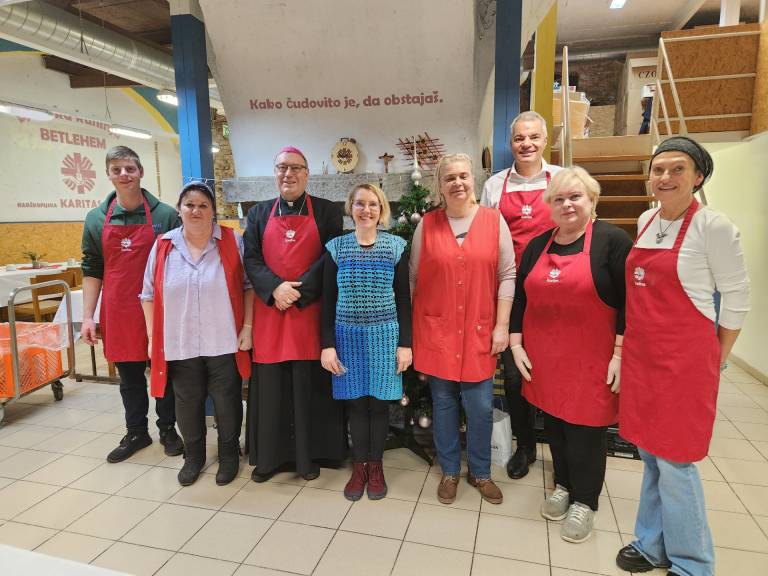 Tik pred božičem je v Ljudski kuhinji Betlehem, kjer Karitas Maribor vsak dan pomaga več kot 60 ljudem v stiski, zadišalo po prazničnem kosilu in toplini skupnosti.