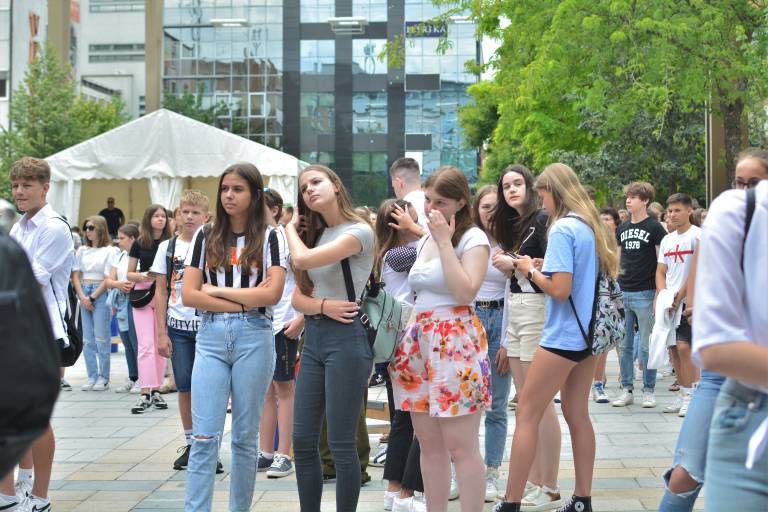 Najboljši mariborski učenci in dijaki so se zbrali v središču mesta, kjer jih je nagovoril župan, za zabavo pa so poskrbeli fantje in dekle iz zasedbe LPS.