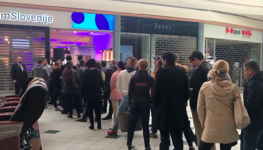 V Europarku so ljubitelji iPhonov pred trgovino Telekoma Slovenije čakali od pol osme ure zjutraj, Europark pa je za vse Applove privržence pripravil celo zajtrk.