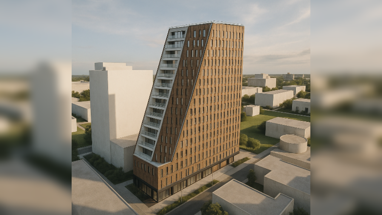 Pozornost je pritegnila tudi arhitektura stolpnice z izrazito poševno silhueto. V podjetju ob tem opozarjajo, da je prikaz, ki kroži v javnosti, konceptualen render.