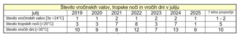 Iz tabele 3 je razvidno, da je bil julij 2025 po količini dežja na četrtem mestu.