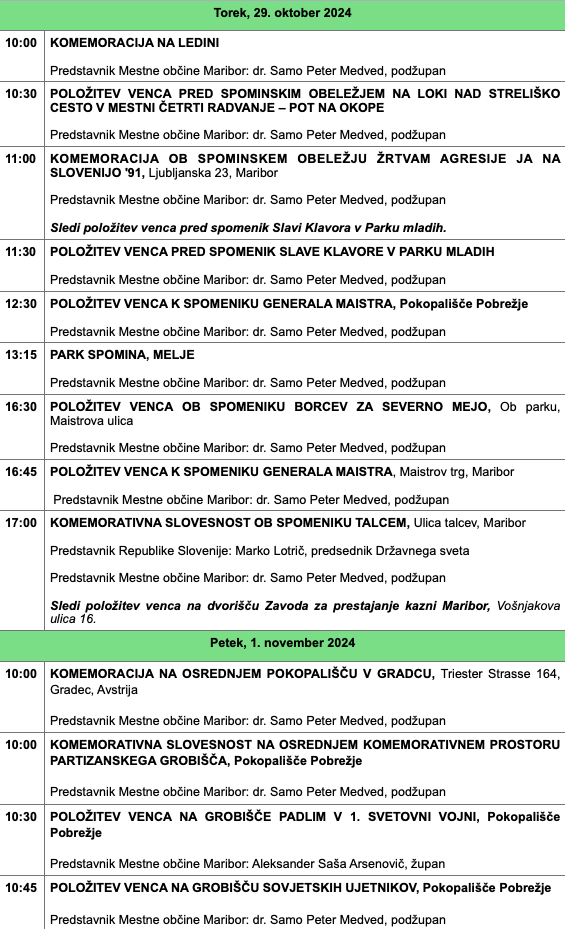 Mestna občina Maribor pa je skupaj z veteranskimi in domoljubnimi organizacijami, 72. brigado Slovenske vojske ter Policijsko upravo Maribor pripravila tudi program komemorativnih slovesnosti, ki so se začele že v četrtek.