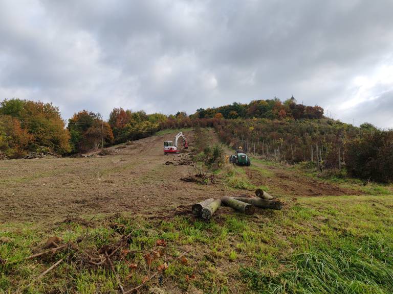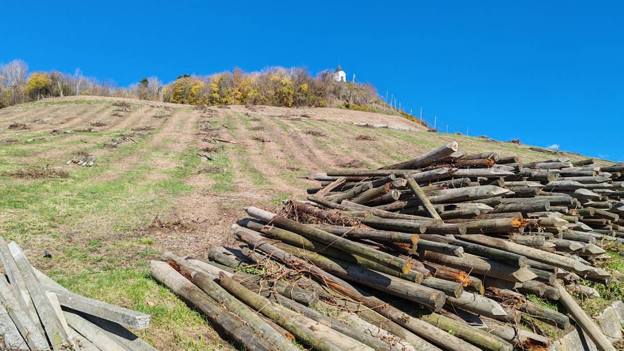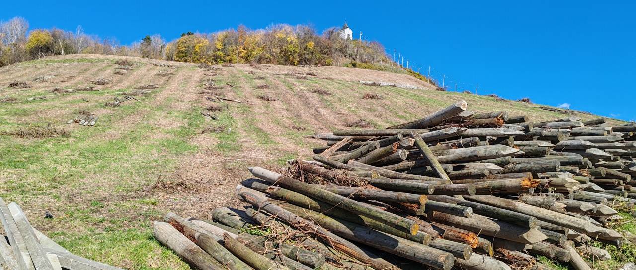 Pri odstranitvi dotrajanega vinograda na Piramidi, ki se je zaključila pred dnevi, je nastala večja količina gorljivih ostankov oziroma lesne biomase – leseni stebri nekdanjega vinograda, suhi trsi in ostanki grmovne zarasti.