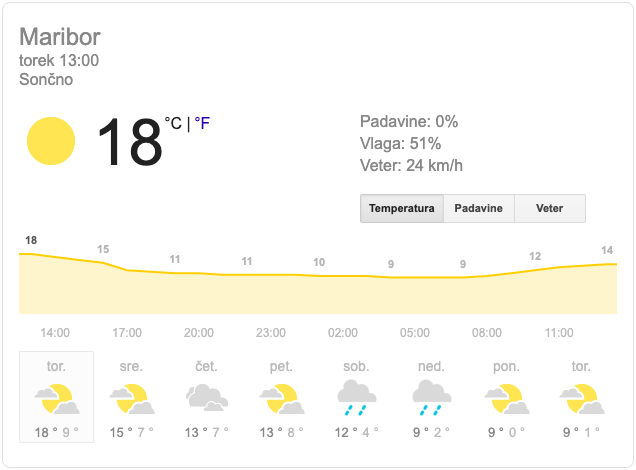Temperature so se v Mariboru okoli 13. ure dvignile že do 18 stopinj Celzija. Tudi v četrtek in petek se vreme ne bo bistveno spremenilo. Na zahodu bo precej oblačno s kakšno kapljo dežja, na vzhodu pa deloma sončno. Še bo toplo za ta čas.