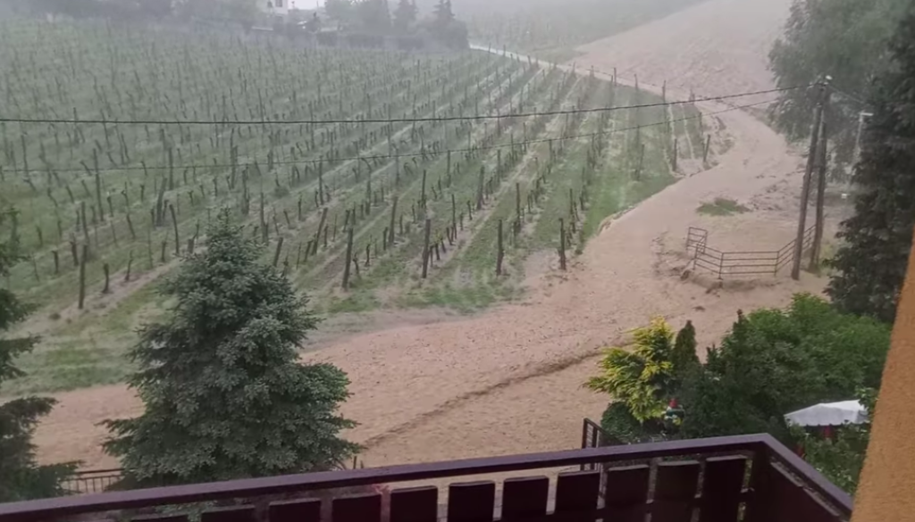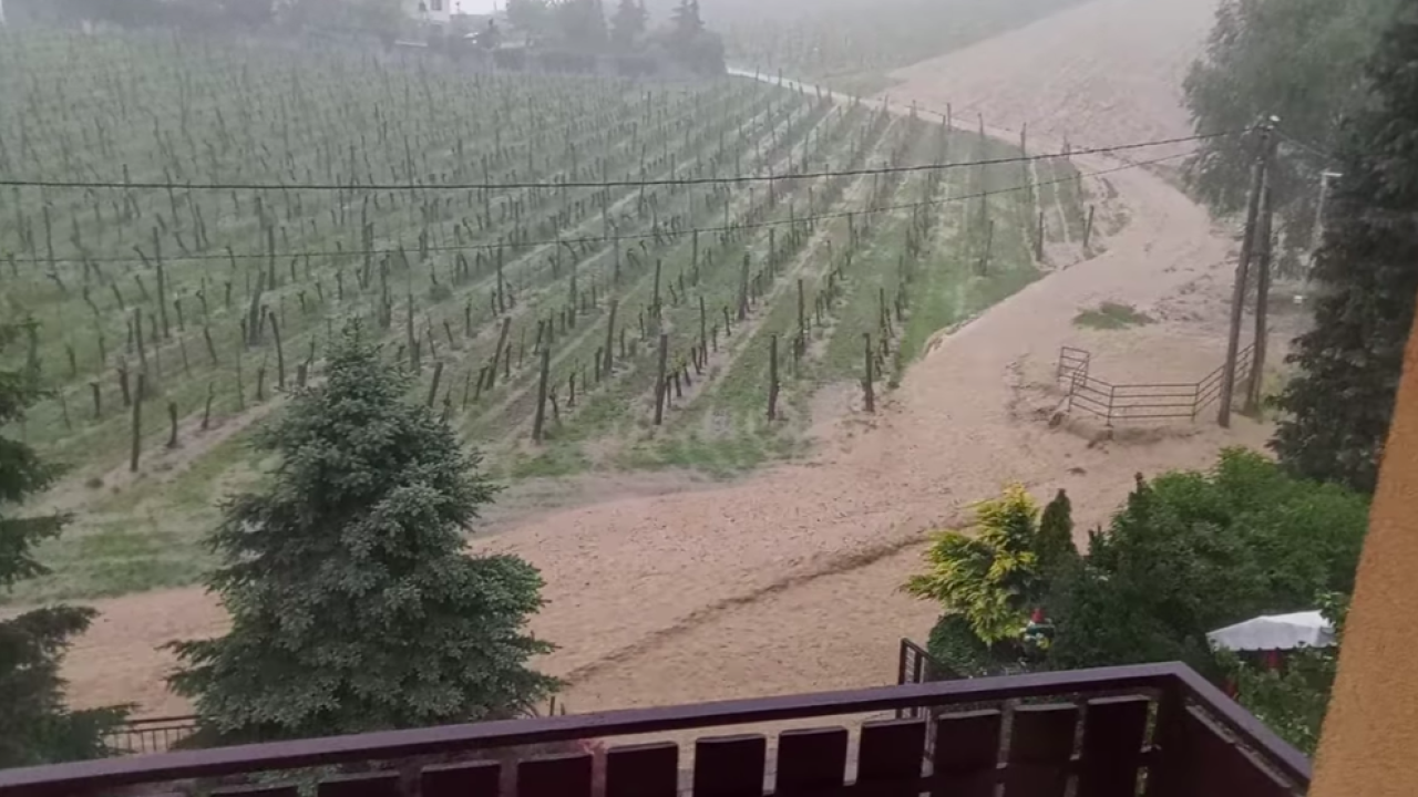 Nevihte z močnimi nalivi so sinoči znova prizadele Slovenijo. Toča je marsikje poškodovala vinograde in uničila pridelek.