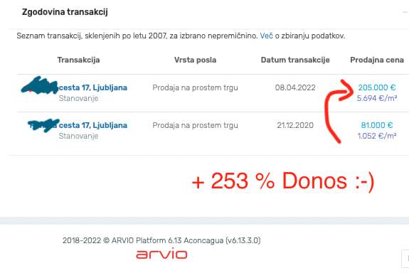 »BRAVO. Nekomu je uspelo v enem letu in štirih mesecih s prodajo istega #stanovanja v centru Ljubljani ustvariti +253-odstotni donos. Prodajna cena na kvadraturo je bila 5694 evrov na kvadratni meter,« je v Facebook skupini Stanovanja Ljubljana zapisal eden od uporabnikov.