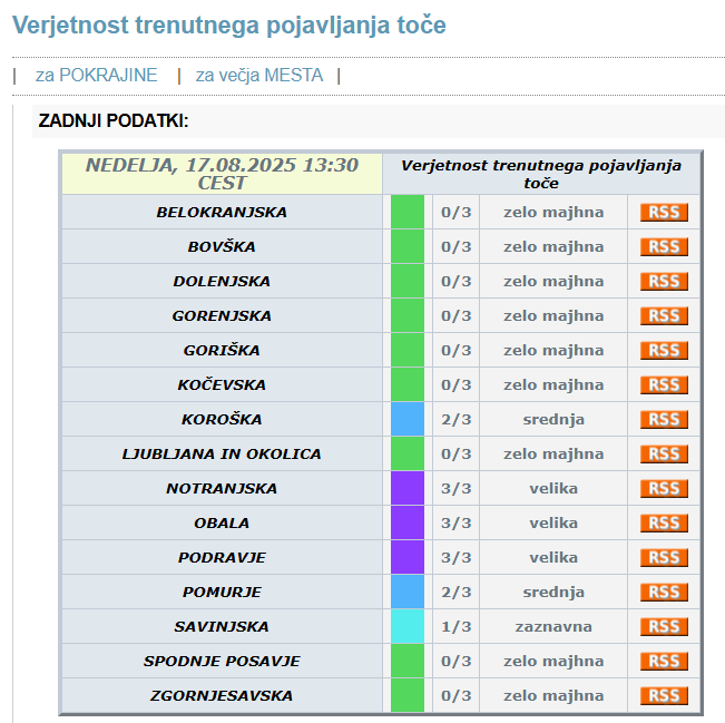 Točonosni oblaki so dosegeli tudi Štajersko zaradi velike verjetnosti toče je agencija za okolje prižgala vijolični alarm.