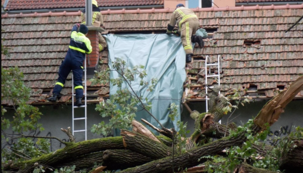 Podrto drevje in drogovi, številne odkrite strehe, dimniški požari in izpadi elektrike. Vse to je za seboj pustil močan veter, ki je v severovzhodnem delu Slovenije dosegal sunke do 90 kilometrov na uro, zaradi česar je Agencija Republike Slovenije za okolje za ta del Slovenije izdala oranžen alarm ogroženosti.