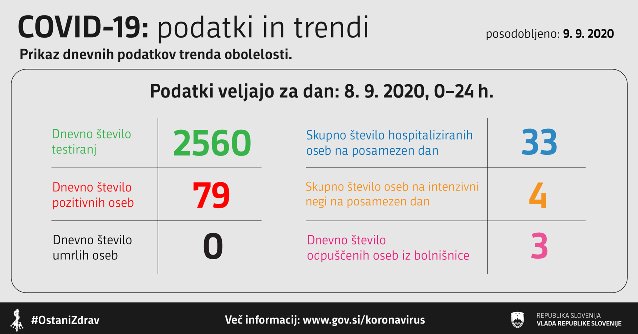 Z Vlade Republike Slovenije so sporočili sveže podatke o trendu obolelosti s koronavirusom v Sloveniji.
