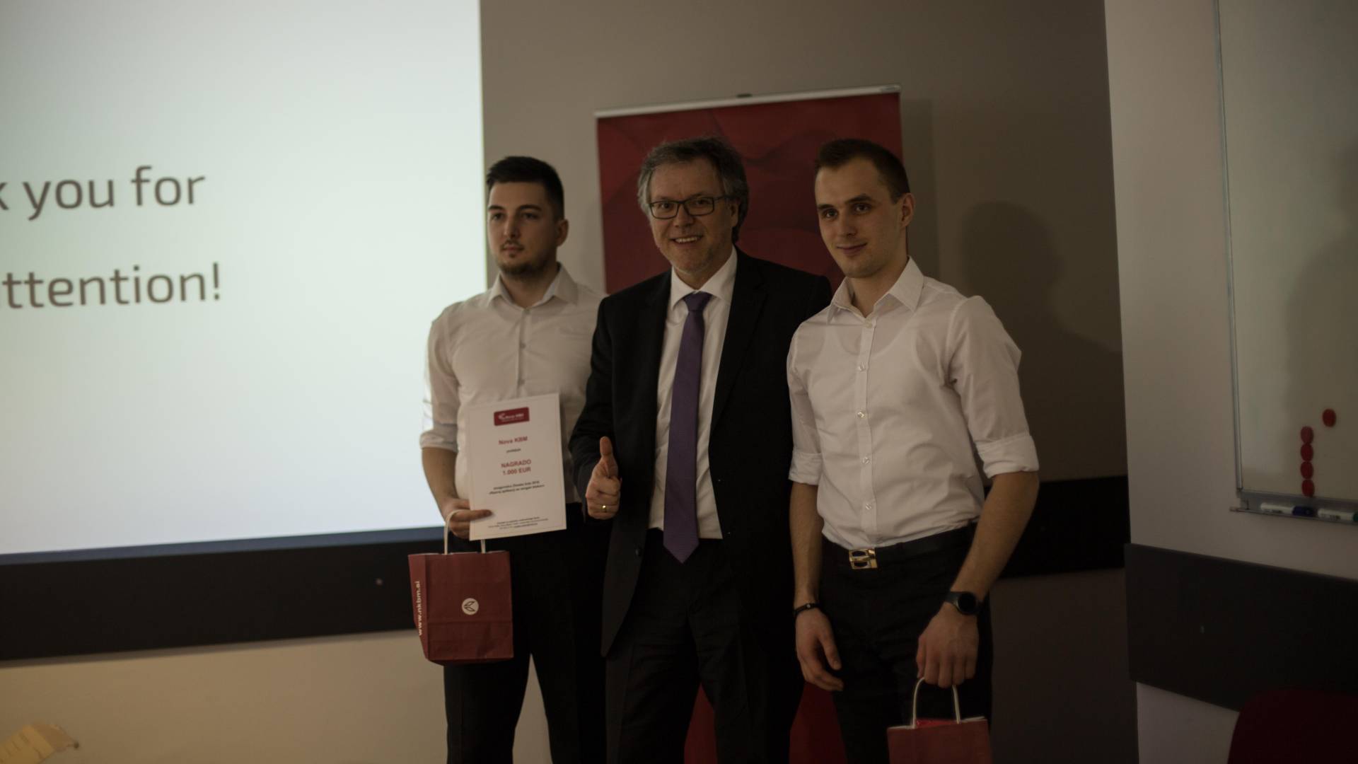 Na izzivu so sodelovale tri ekipe študentov. Kljub temu, da so vse tri razvile izjemno prodorne in uporabne rešitve, se je komisija na koncu odločila, da sta najboljšo rešitev predstavila Jure Sreš in Domen Hohler, ki sta prejela tudi denarno nagrado. Obeta se jima tudi priložnost plačane poletne prakse oziroma redne zaposlitve po končanem študiju. Za vse udeležence zimske šole je bil danes, pred uradno podelitvijo nagrade, organiziran tudi voden ogled informacijskega oddelka banke.