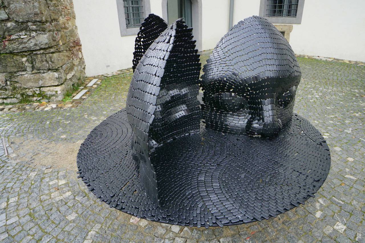 Gre za umetniško skulpturo kiparja Primoža Puglja z imenom »Klop«, ki stoji pred Lutkovnim gledališčem Maribor v obliki mask, kar je avtorjeva prepoznavna forma.
