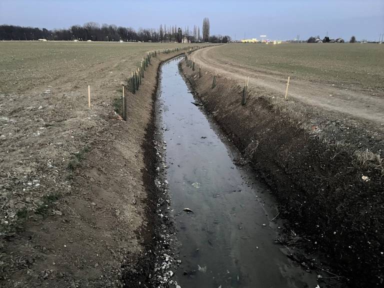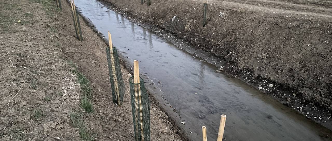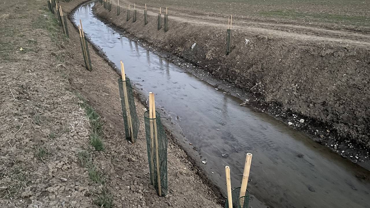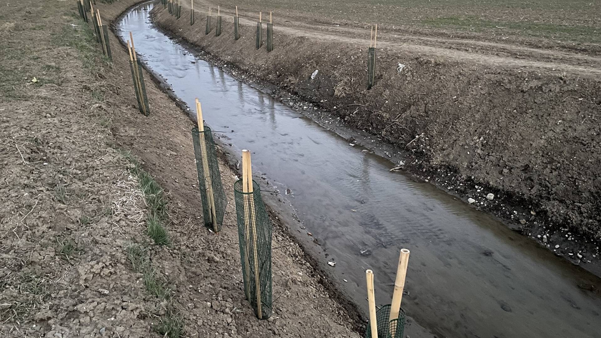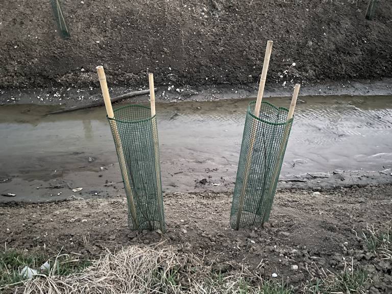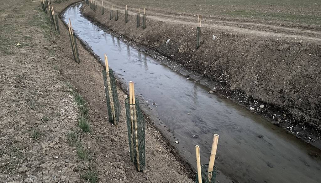 Zasadili so 280 dreves, med njimi tako najdemo bela vrba, trepetlika in črna jelša, na določenih delih pa so vzpostavili gostejša jedra zasaditve in so drevesnim vrstam prisadili še grmovnice, kot so trdoleska, brogovita in rumeni dren.