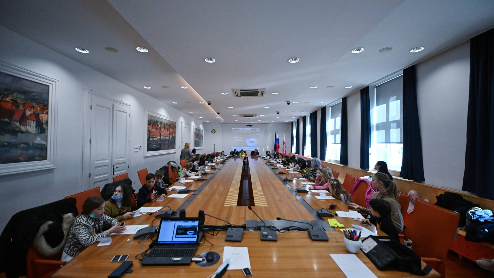 Najprej so imeli z mladimi nadobudneži zasedanje »prvega otroškega mestnega sveta, kjer je bilo vseh otroških mestnih svetnikov 43 in so z večino (dva sta bila proti) potrdili dnevni red in nato tudi točko, da se bodo imeli 'super in zelo fajn'.«