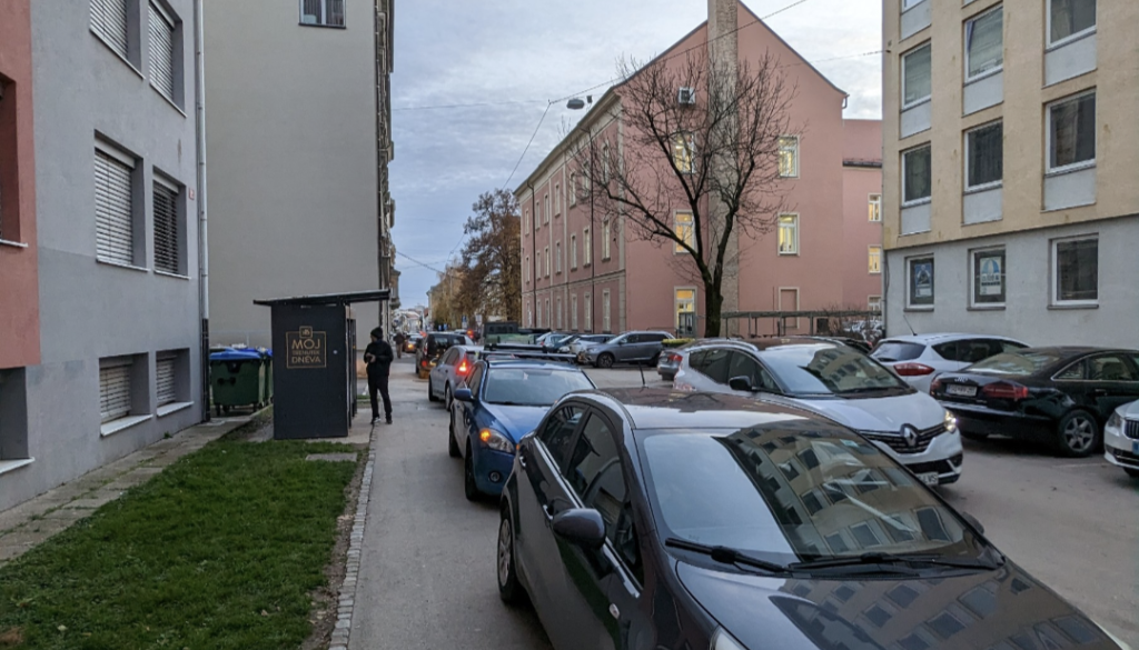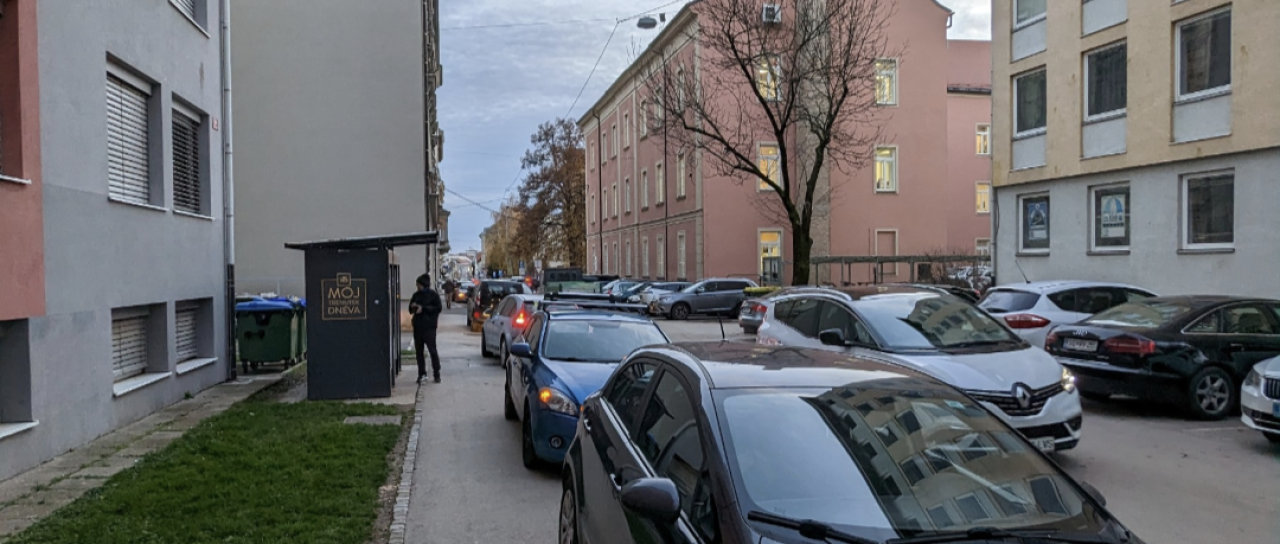 »Na odseku Tyrševe med parkom in Mladinsko je vsako popoldne in večer pločnik zaparkiran po celi dolžini. Prisvojili so si ga starši, ki čakajo na svoje sončke v glasbeni šoli in športnih ustanovah, da ti slučajno nebi rabili iti 100 metrov peš.«
