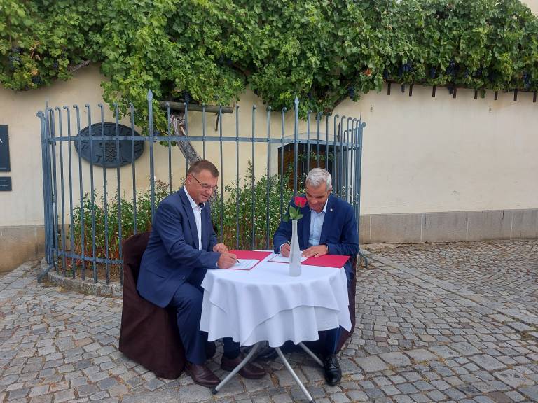 Pred Hišo Stare trte na Lentu sta tako danes župan Mestne občine Maribor Saša Arsenovič in direktor Dravskih elektrarn Maribor Andrej Tumpej podpisala pisma o nameri sodelovanja pri omenjenem projektu Dravske promenade - sprostitvenega in rekreacijskega obroča, ki bo v dolžini okoli 14 kilometrov neposredno povezoval kar šest mestnih četrti in krajevnih skupnosti, vse od Mariborskega otoka do Malečniškega mostu.