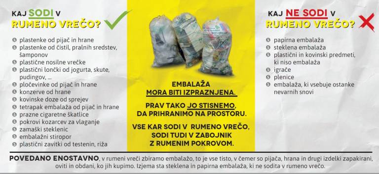 »Zavitku vreč bo priloženo tudi obvestilo s potrebnimi informacijami in navodili o tem, kaj sodi v rumeno vrečo in česar v njo ni dovoljeno odlagati,« so sporočili.
