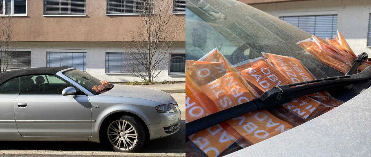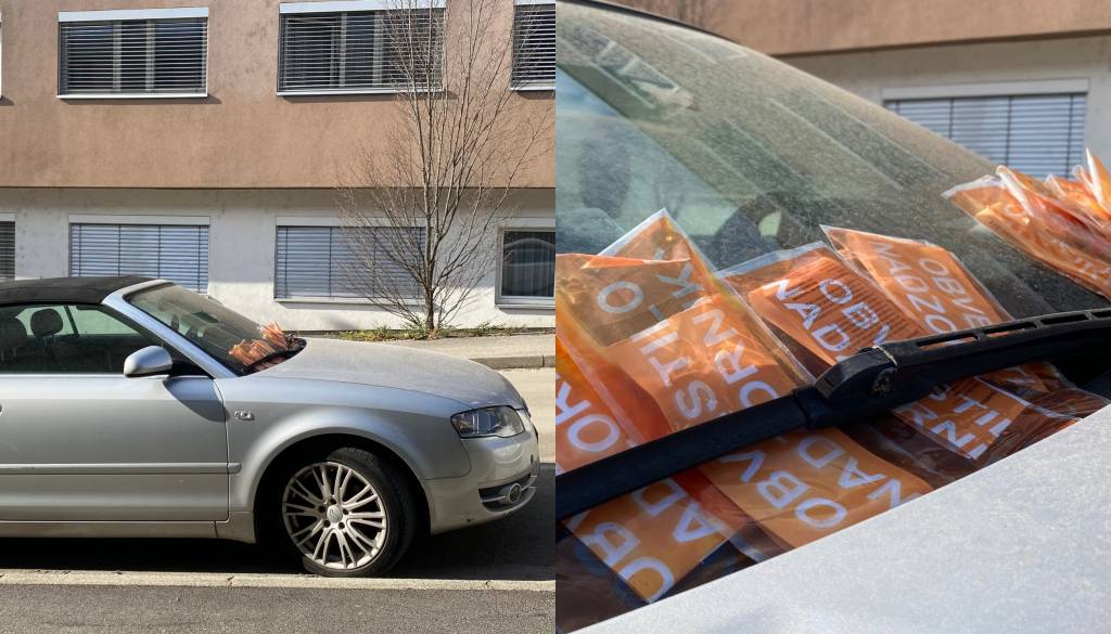 Pred dnevi smo poročali o parkiranem avtomobilu na ulici Ob bregu, ki ima za brisalci kup 'obvestil nadzornika'.