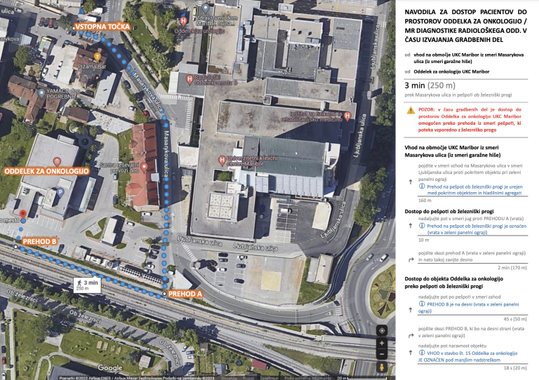 Univerzitetni klinični center Maribor obvešča o motenem dovozu do onkologije.