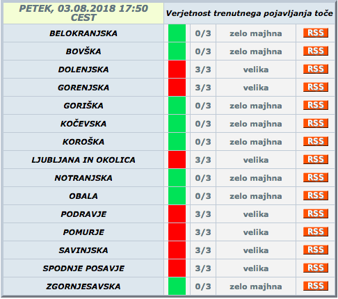 Za Podravje je že izdan rdeč alarm za verjetnost trenutnega pojavljanja toče.