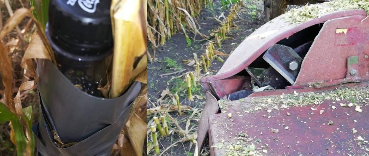 »V soboto, 12. oktobra 2019, smo na koruznem polju v Negovi poškodovali enoredni kombajn zaradi nastavljene nerjaveče palice, 14. oktobra 2019 pa smo, na srečo, pred kombajnom naleteli na nastavljeno plastenko z naboji in šibrami. V primeru, da bi s kombajnom zadevo poželi, bi lahko prišlo do eksplozije ali pa bi metki pričeli leteti iz rora kombajna. Če nabojev ne bi našli pred kombajnom, bi lahko slednji povzročili smrtne žrtve,« nam je povedal domačin iz okolice Gornje Radgone.