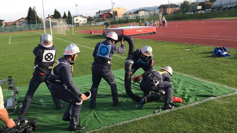 »Odvzem vode iz potoka. Dve B cevi do trojaka, prvo C cevi. Prva in druga napad!« je sledilo jasno povelje desetarja po postroju v uniformah in čeladah. Nato je sledil prvi del vaje: spajanje sesalnega voda v manj kot dvajsetih sekundah, pri čemer je šlo za vajo za naslov prvakov na gasilski olimpijadi v Beljaku.