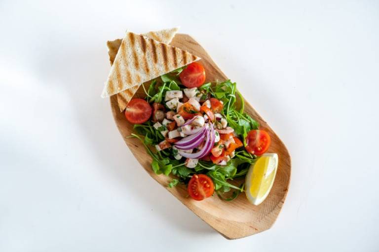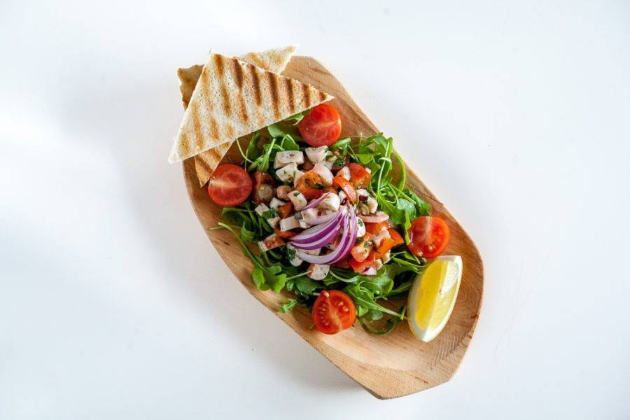 Recept za najboljšo hobotnico v solati smo zasledili na blogu MegaMama. Za pripravo potrebujete hobotnico, jušno zelenjavo, češnjev paradižnik, vložene kapre, limono rukolo, sol, poper, olivno olje, kis in rdečo čebulo.