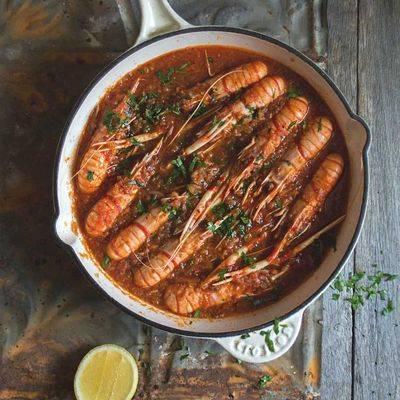Recept za škampe v omaki iz paradižnika in belega vina je na voljo na spletni strani Moji recepti. Za jed potrebujete olivno olje, čebulo česen, peteršilj, poper, štiri decilitre vina, 1 kilogram škampov, lovorjev list, paradižnik in drobtine.