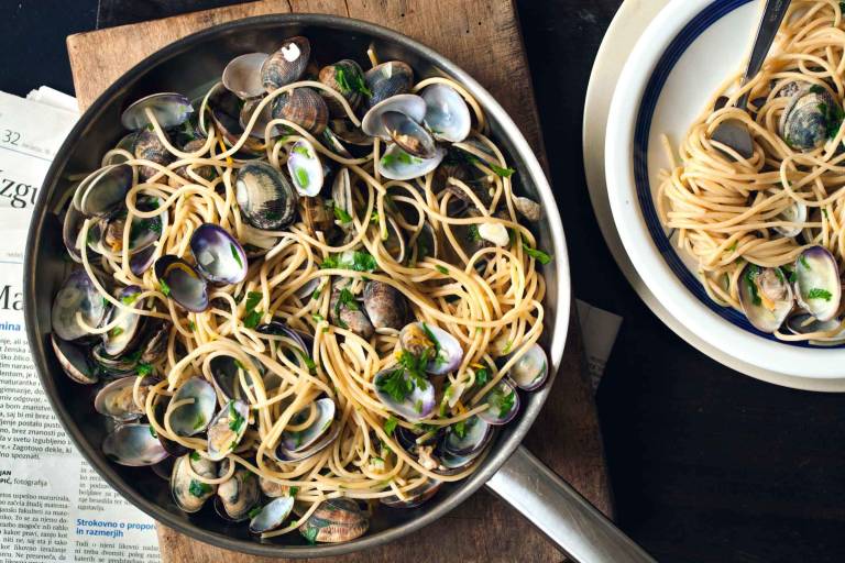 Na kuharskem blogu Jernej kitchen smo zasledili odličen in preprost recept za špagete z vongolami. Kot so zapisali na blogu gre za slastno, sočno jed, ki mora biti pripravljena enostavno. Narejena z drobnimi školjkami, česnom in peteršiljem.