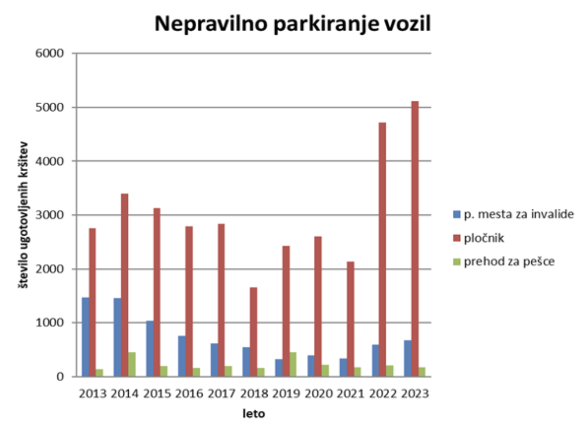 Iz statistike je razvidno, da je bil trend ugotovljenih kršitev na mestih za invalide od leta 2013 do leta 2021 v upadanju, v letu 2022 in 2023 je število ugotovljenih kršitev znova narastlo.