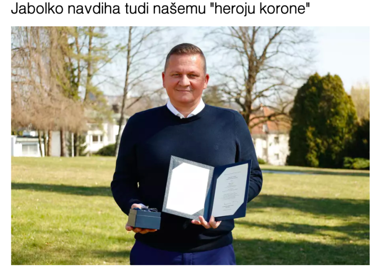 Predsednik republike Borut Pahor je včeraj v parku Vile Podrožnik vročil priznanje jabolko navdiha sedemnajstim herojem korone, ki smo jih v petnajstih zgodbah predstavili na spletnih medijih Sobotainfo, Mariborinfo, Ptujinfo in Ljubljanainfo.