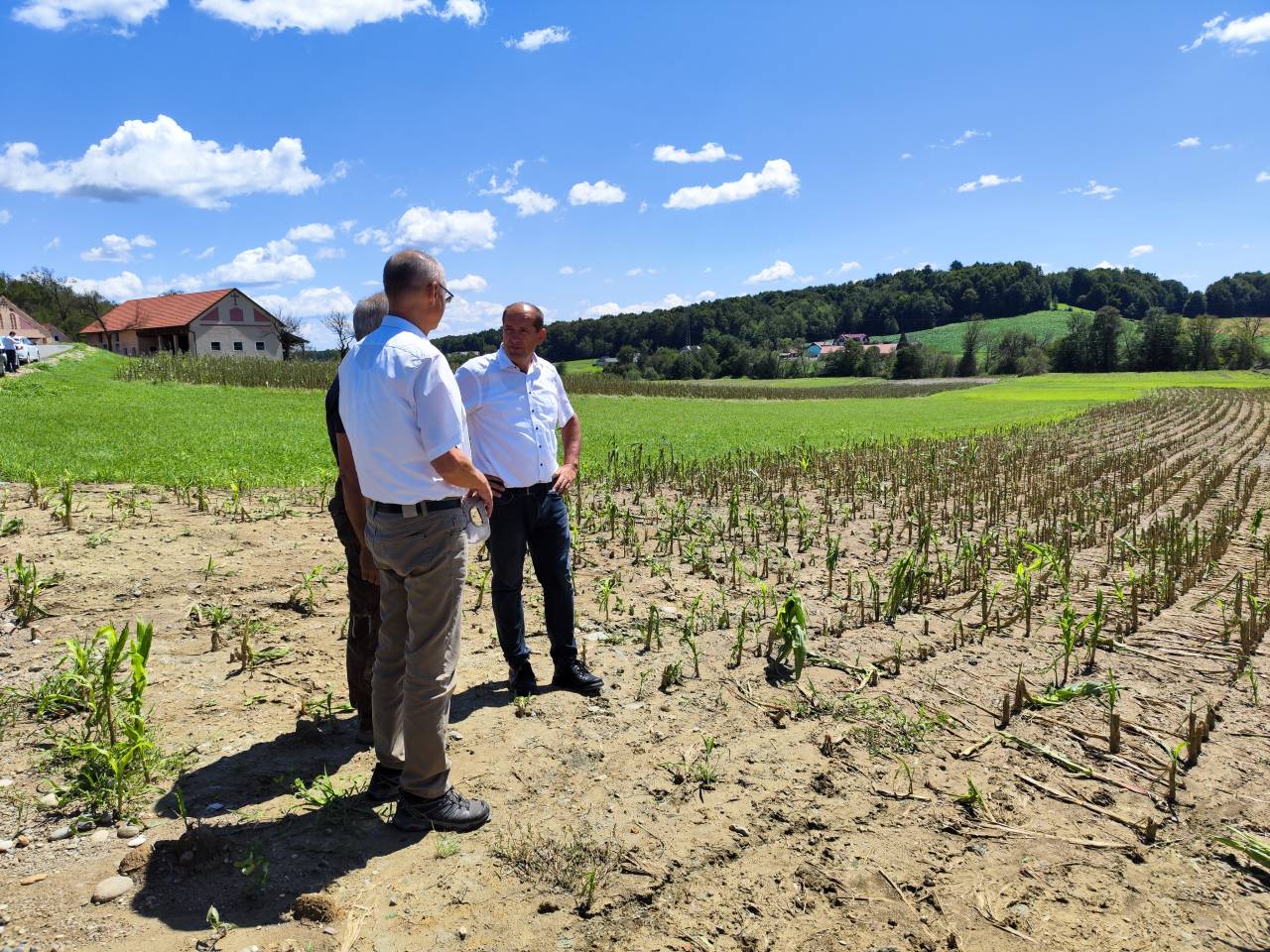 Tako so kmetje danes državnemu sekretarju na kmetijskem ministrstvu Dariju Krajčiču kazali od toče poškodovane njive, kjer letos ne bo zrasla krma za njihovo živino.
