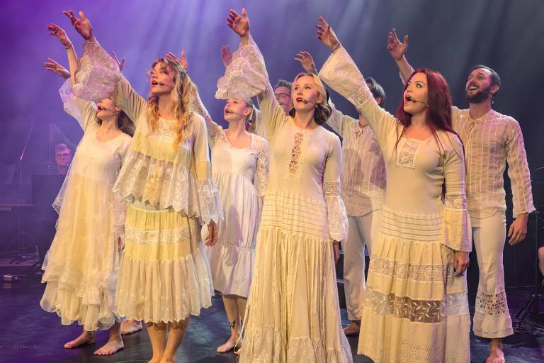 Na svojem prvem večjem nastopu v razprodanem amfiteatru Druge gimnazije so predstavili 12 različnih muzikalov. Na nocojšnjem koncertu bo med drugim mogoče slišati tudi Abbine uspešnice iz Mamme Mie. Skupino sestavlja približno 20 orkestrašev in 11 pevcev, priprave na tak nastop pa trajajo okoli šest mesecev.