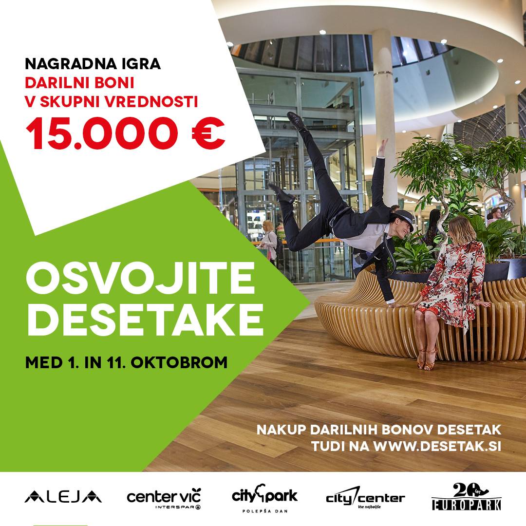 Vsi obiskovalci, ki boste v kateri koli prodajalni ali lokalu mariborskega nakupovalnega središča opravili nakup za 10 evrov ali več, boste lahko sodelovali v nagradnem žrebanju za darilne bone Desetak.